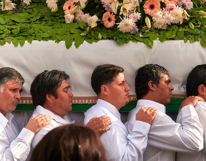 Caminé detrás de ellos con la única intención de recomendarles una posición más segura para  trasladar el cuerpo. Cuando los alcancé ya estábamos dentro del funeral. Me pareció imprudente corregirlos enfrente del público, así que busqué un asiento. Por fortuna, no había mucha gente.