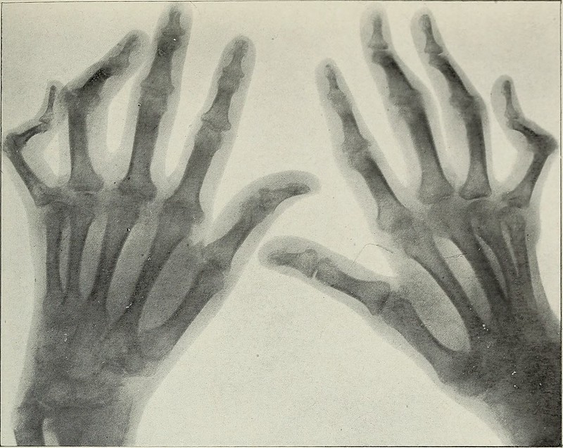 En un cuadro con molduras decapadas observarán la radiografía de mi brazo izquierdo. Noten la fisura: me la hice al caer de la bici mientras jugaba con mis primos a saltar el arroyo.
